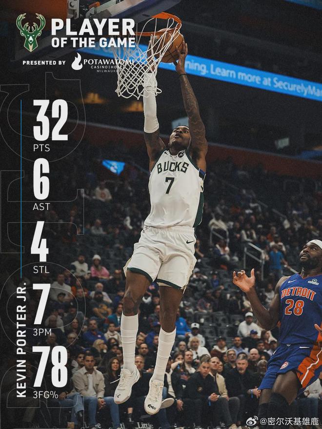 至于小波特,在雄鹿的日子簡直爽歪歪,本賽季至今場均出戰28.8分鐘,轟下21.8分3.5板5.8助2.2斷,投籃命中率55.8%,場均以高達61.8%命中率扔進3.5記三分球,直接打成了球隊的核心后衛,場均得分隊內僅次于字母哥(場均28.9分)。