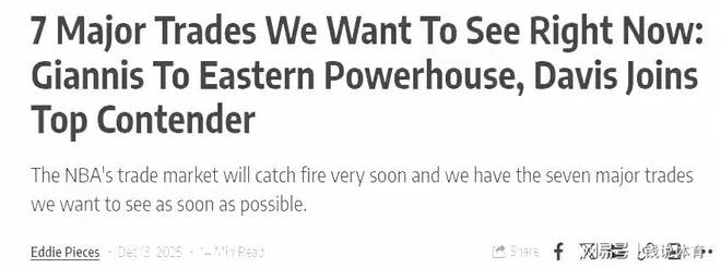 本賽季的NBA賽程已經快打完三分之一,聯盟很多球隊都暴露出各種各樣的問題,急需在即將開啟的交易市場尋求改變。而本賽季,多名巨星都卷入交易緋聞中,其中包括字母哥、濃眉哥兩大冠軍級別的內線,除了二人外,聯盟還有5人有望在本賽季被交易。美媒露天看臺列出本賽季外界最想看到的7大交易,其中濃眉加盟勇士的交易赫然在列。