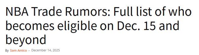 北京時間12月15日,在NBA的賽程日歷上,本周二(北京時間12月16日)是一個關鍵節點——今夏簽下絕大部分自由球員合同的球員將從即日起具備被交易資格。換句話說,NBA的交易市場一下子多了77個可供選擇的目標,這也意味著球隊談判的范圍和籌碼明顯增加,大大提升了交易達成的可能性。